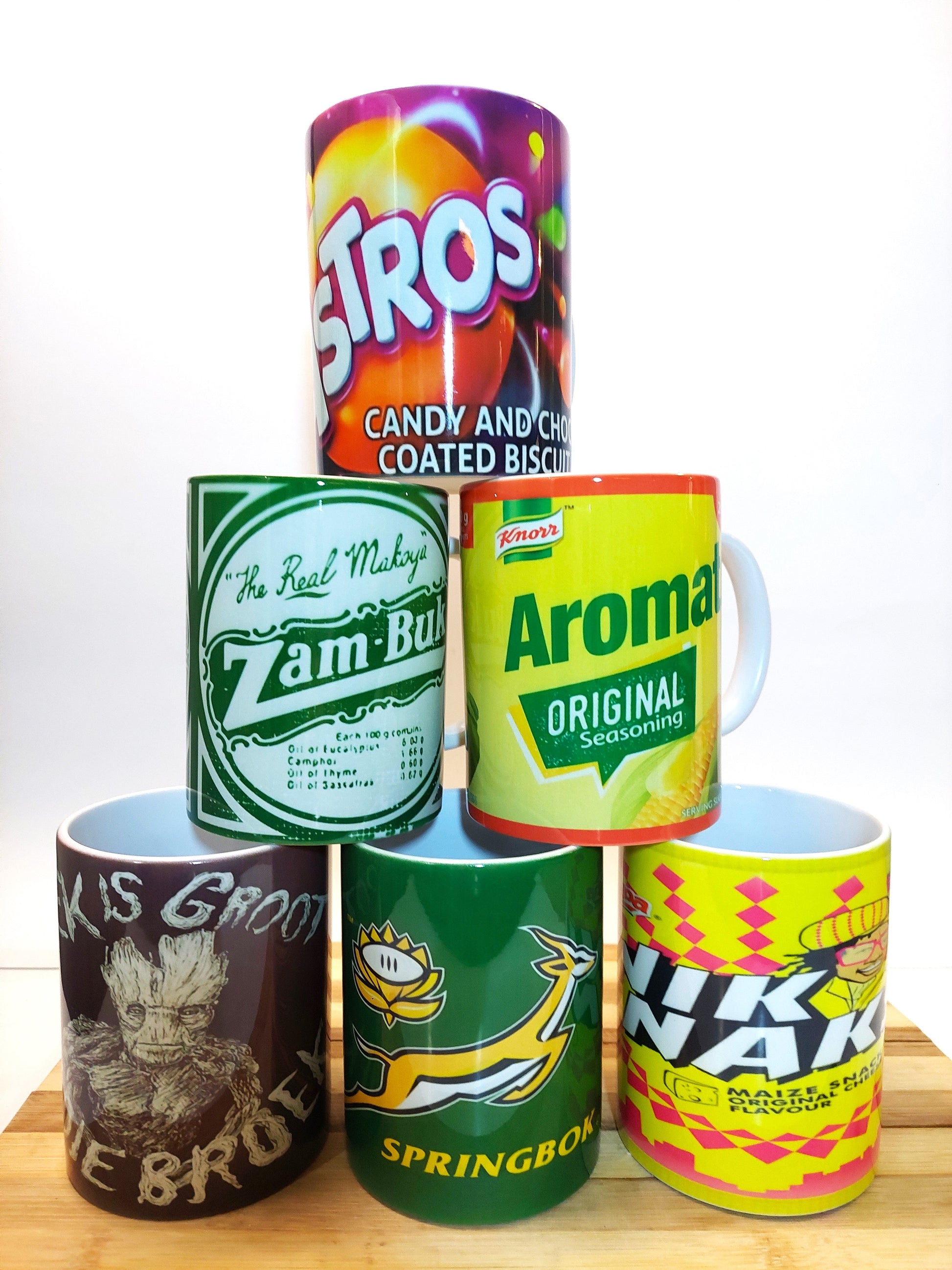 Beautifully designed ceramic mugs with cute Afrikaans Branding. 11 cm