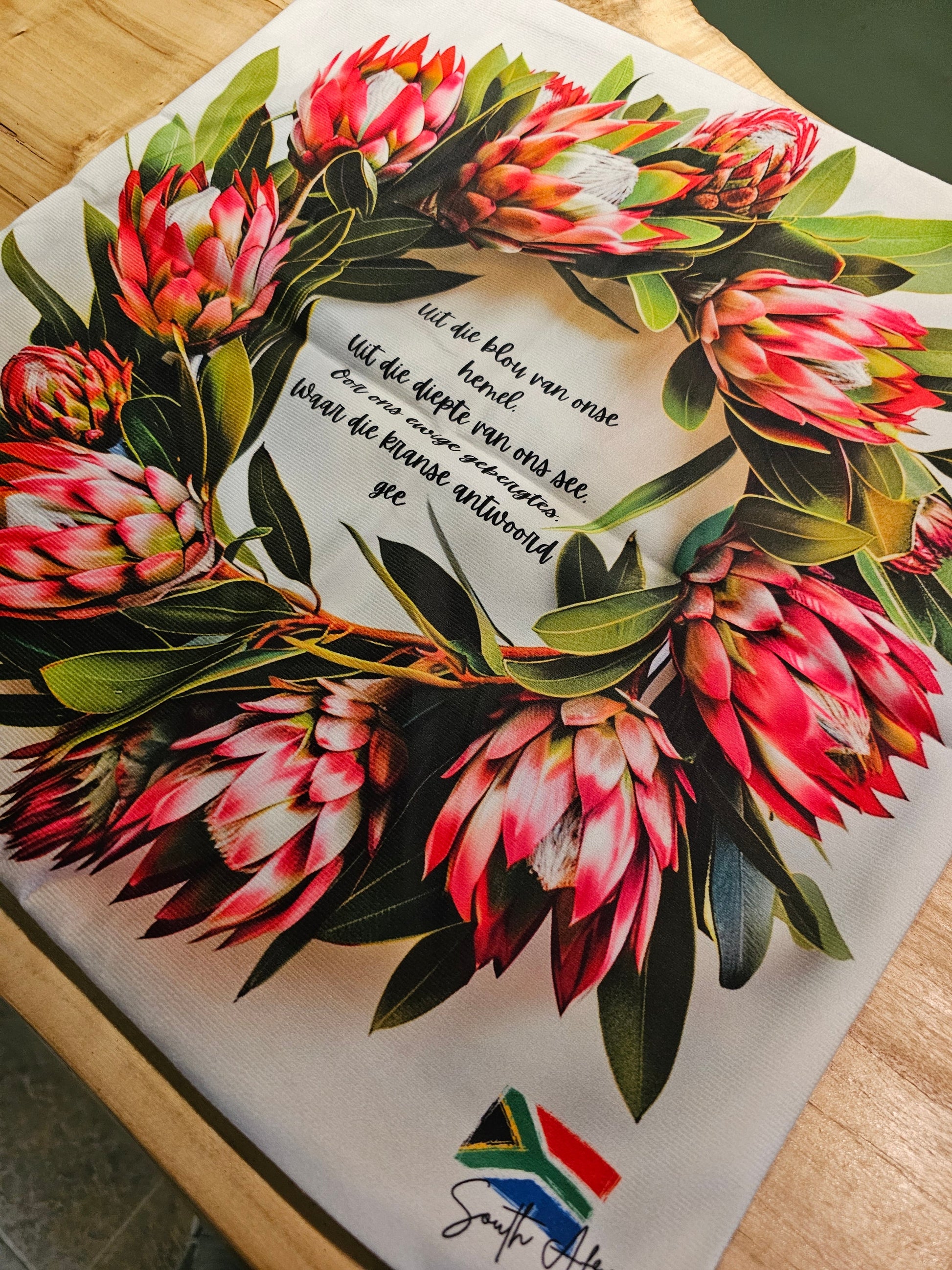 Beautifully made, designed by a local South African lady! High quality and none other like it. South Africa wording, proteas and images with the South African folks song on the back