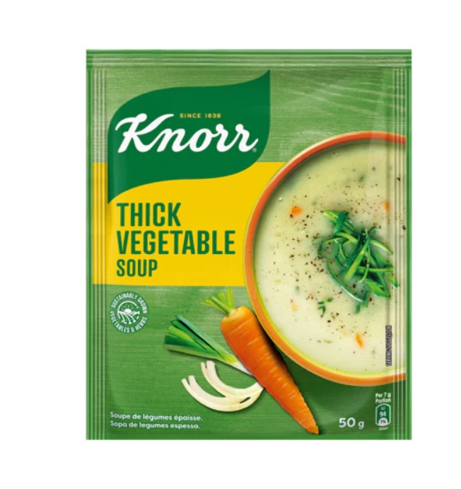 A quick and easy vegetable soup that is tasty, creamy, and thick. Simply combine this packet's contents with hot water, stir, and enjoy. This soup tastes homemade because real vegetables were used to prepare it. Serve hot with bread, or use it to thicken stews and sishebos by combining the soup powder with water.