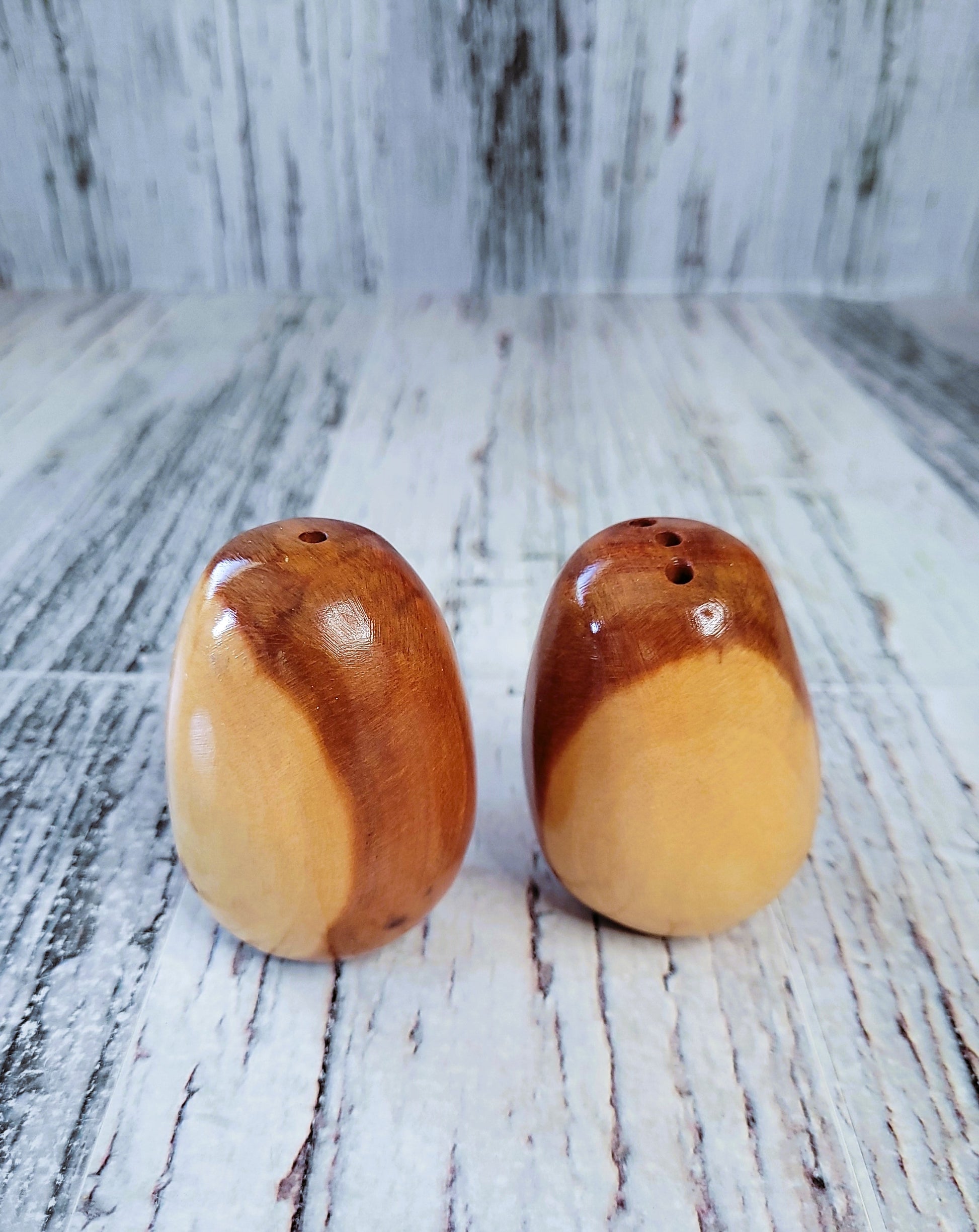 Salt & pepper pots, measuring 9 cm each attached. This is a very unique little hand crafted set not to miss out on.