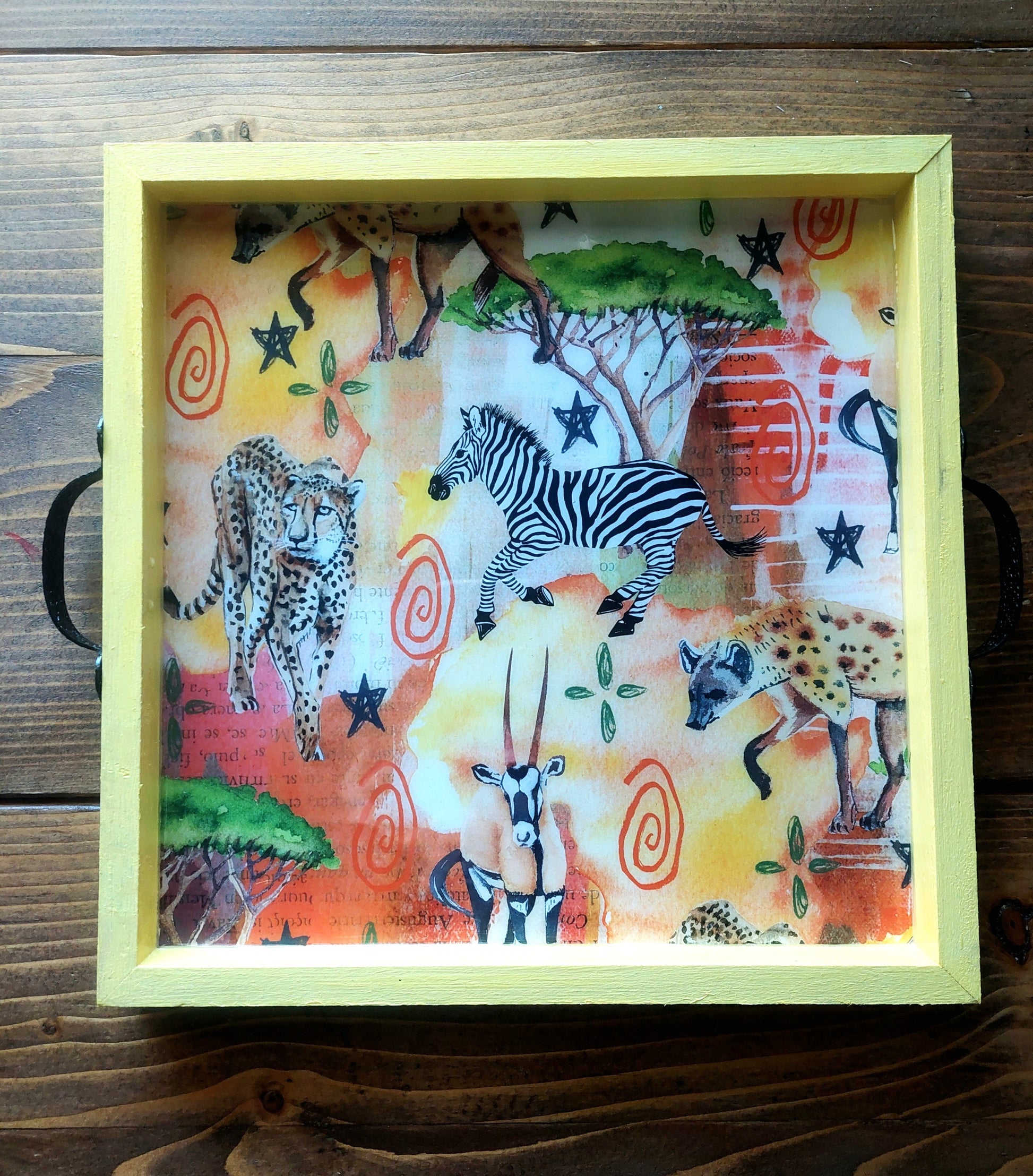 Lovely designed and hand painted serving tray finished off with resin to give it a lovely lasting effect