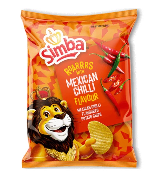 Simba Mexican Chilli Flavor Potato Chips, 125g bag.